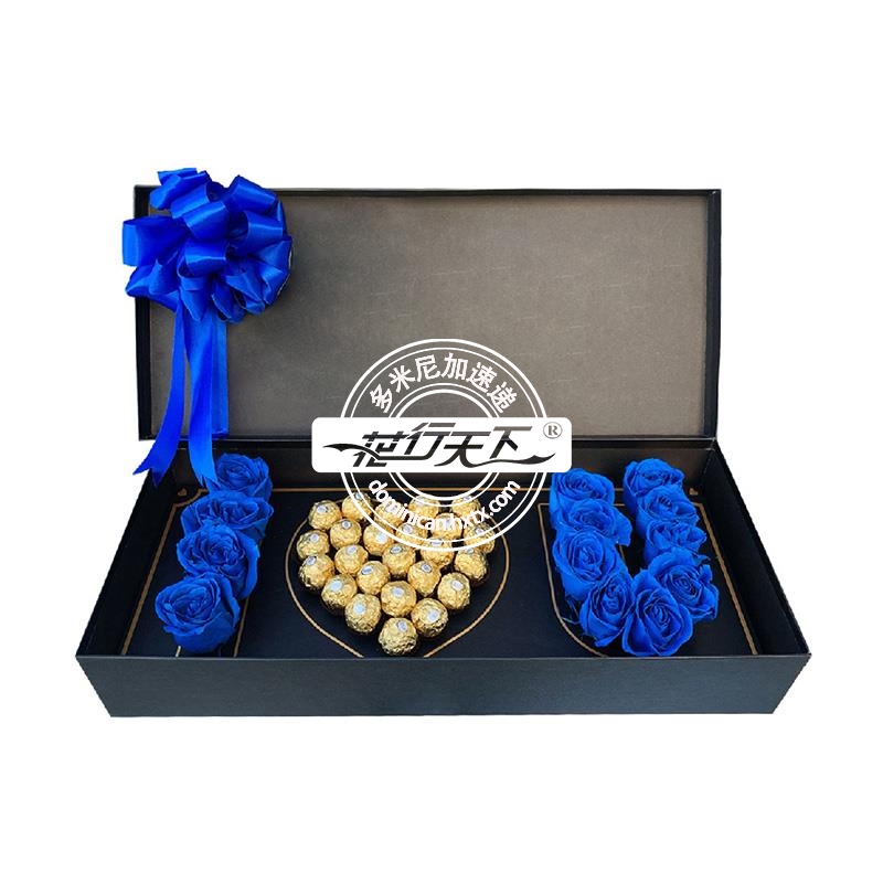 进口顶级蓝玫瑰、费列罗巧克力组成、礼盒装.